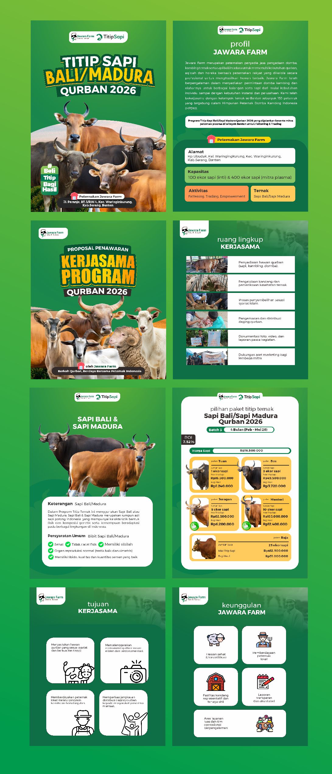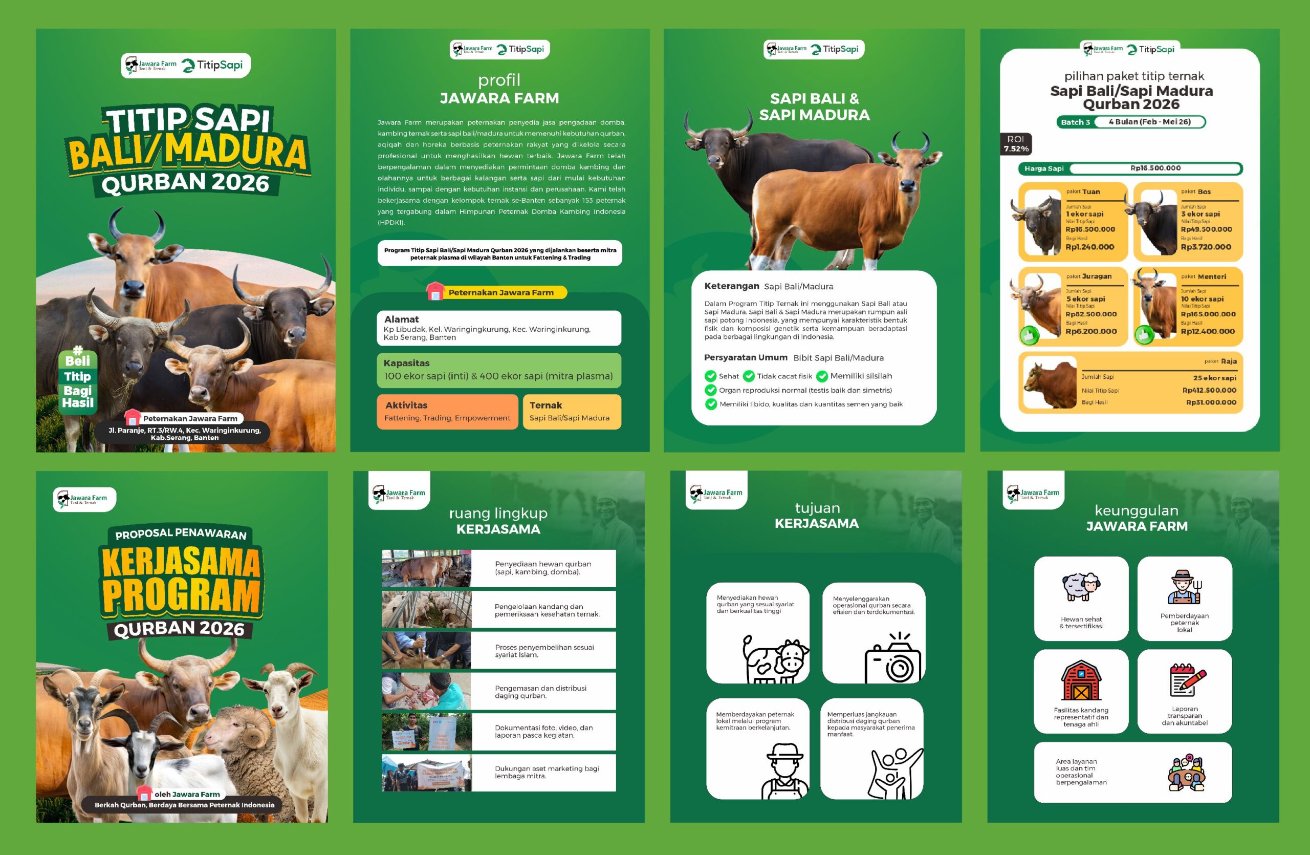 Saya melihat tantangan adalah mengubah data dan informasi tekstual yang padat (seperti profil perusahaan, paket harga, dan scope of work kerjasama) menjadi dua dokumen yang mudah dinavigasi, terlihat profesional, dan mencerminkan kredibilitas peternakan. Dokumen harus meyakinkan calon mitra bahwa Jawara Farm adalah pilihan investasi yang solid, namun tetap memiliki visual identity yang selaras dengan brand utama.